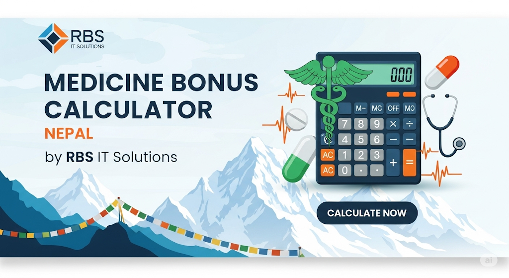 Introducing Nepal's First Medicine Bonus Calculator Navigating the world of medicine distribution in Nepal comes with its own set of unique challenges. For pharmacists, distributors, and medical representatives, a significant portion of their time is spent on a tedious and error-prone task: manually calculating product bonuses. These calculations, which often involve complex formulas for both domestic and Indian products, can lead to significant human errors, affecting profit margins and overall business efficiency. At R.B.S. IT Solutions, we saw this common problem and decided to build a simple yet powerful solution. We are proud to introduce the Medicine Bonus Calculator, the first of its kind developed in Nepal and available on Google.